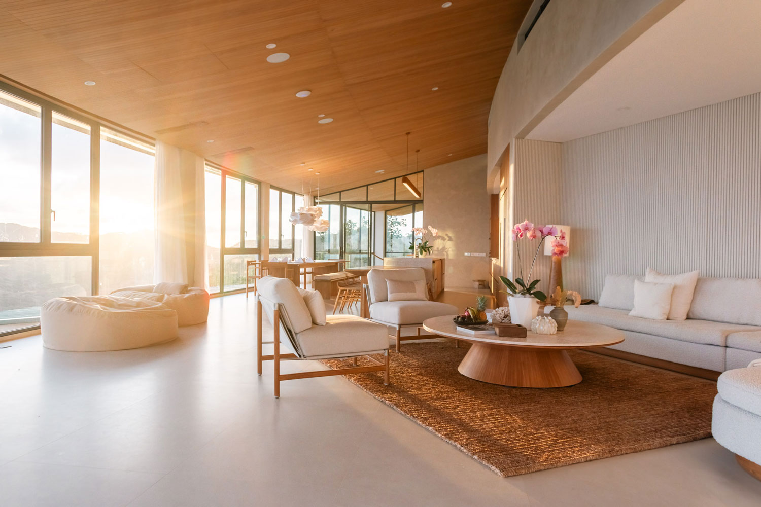 Tearing slanted roofs will frame the views – as the day progresses one can travel through the house to find one’s adequate spot.